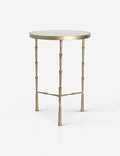 A little table with a lot of personality. Hand-carved from mango wood with a grey and white marble top, this drum style side table features the florence broadhurst pattern bringing refined, classic character to the space. The finalizing touch of marble at the top adds a hint of modern appeal.