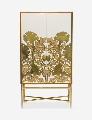 With its swooping arched design and sleek blackened finish, this curio cabinet is a showcase piece itself. Its beautifully-crafted cabinetry of solid oak features four spacious interior shelves and a clear glass front, ready for displaying special-occasional dinnerware, favorite books, and treasures.