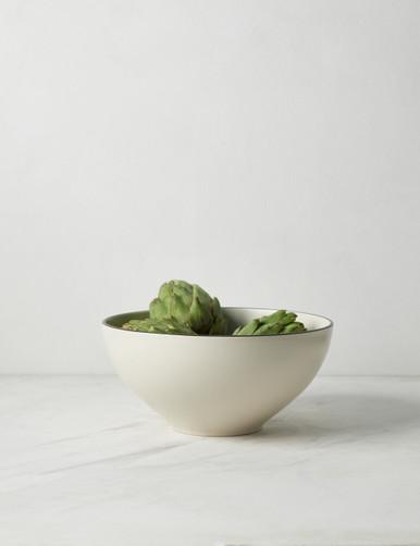 Augusta from Costa Nova offers a well-balanced, versatile dinnerware collection that can be dressed up for formal dining or folded into your everyday mealtime routines. This low bowl dish set comes in a smooth neutral matte finish, set off by a bold black rim for a pared-down elegance that will elevate every serving.