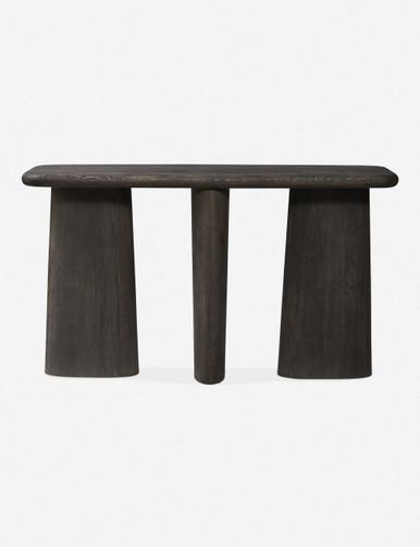 This media console table takes a statement-making approach to organic, natural materials. With contrasting legs for a floating look, sleek brass hardware on all six doors, and media cutouts, it's a perfect fit for your modern living room.