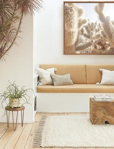 Bring naturally chic style into your home with this Moroccan shag rug, hand-knotted using undyed wool. Inspired by traditional Beni Ourian designs, it features a distinctive geometric motif characteristic of the aesthetic, plus braided fringe for a touch of texture.