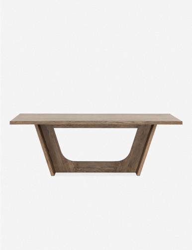 This Mojave Round Dining Table features a sparse, almost ethereal look, with its white-washed finish, clean lines, and architectural base. Crafted from solid acacia, three pillars complement a slim round top. Simply curate this dining room table with chairs and tableware in soft, muted colors—it doesn't need much decoration.