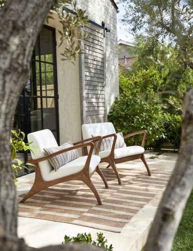 Update your outdoor living space with the contemporary comfort of this chair, featuring a weather-resistant teak frame and upholstered cushions. With sleek lines, a low profile, and contrasting back straps, this lounging piece looks great from every angle!
