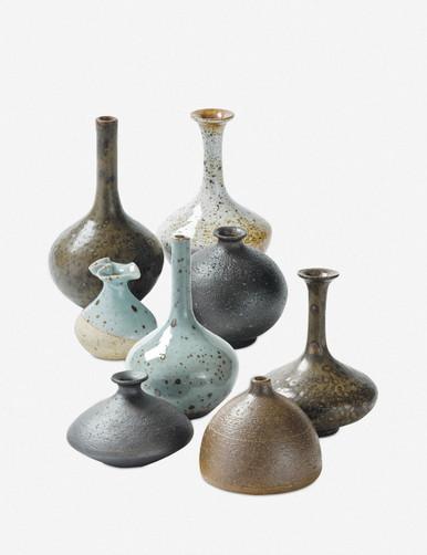 A glossy white finish highlight the natural forms and organic feel of this set of three earthenware vases. Intricately crafted from ceramic by skilled artisans, these vases are a standout accent styled on their own, on your coffee table, dinner table, or sideboard. Or, add a few sprigs and branches for a fresh vibrant look.