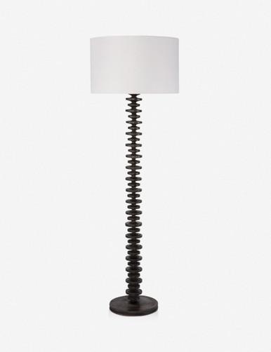The organic and textural design on the base of this Nabu Metal Floor Lamp adds a striking contrast to its clean-lined, industrial look. In a white color palette and finished with gold accents, this fixture is a stylish addition beside your sofa, next to your favorite occasional chair, or placed in a bedroom.